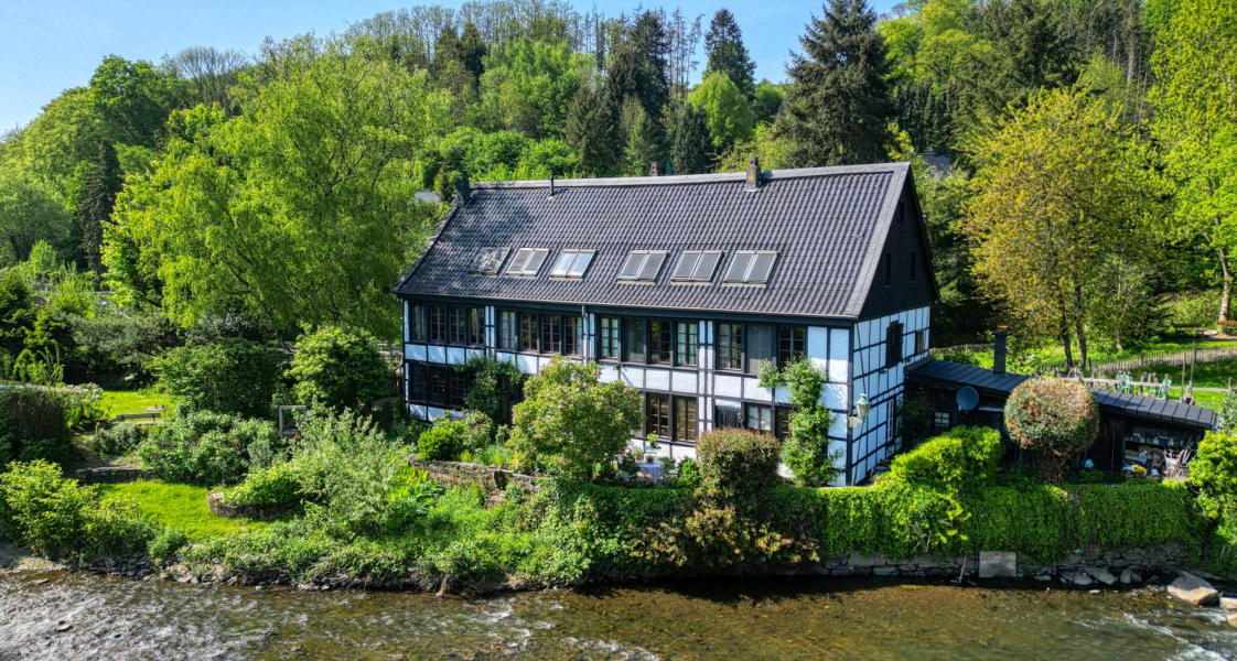 Fluß oder die Grenzbebauung, die einen Drohneneinsatz